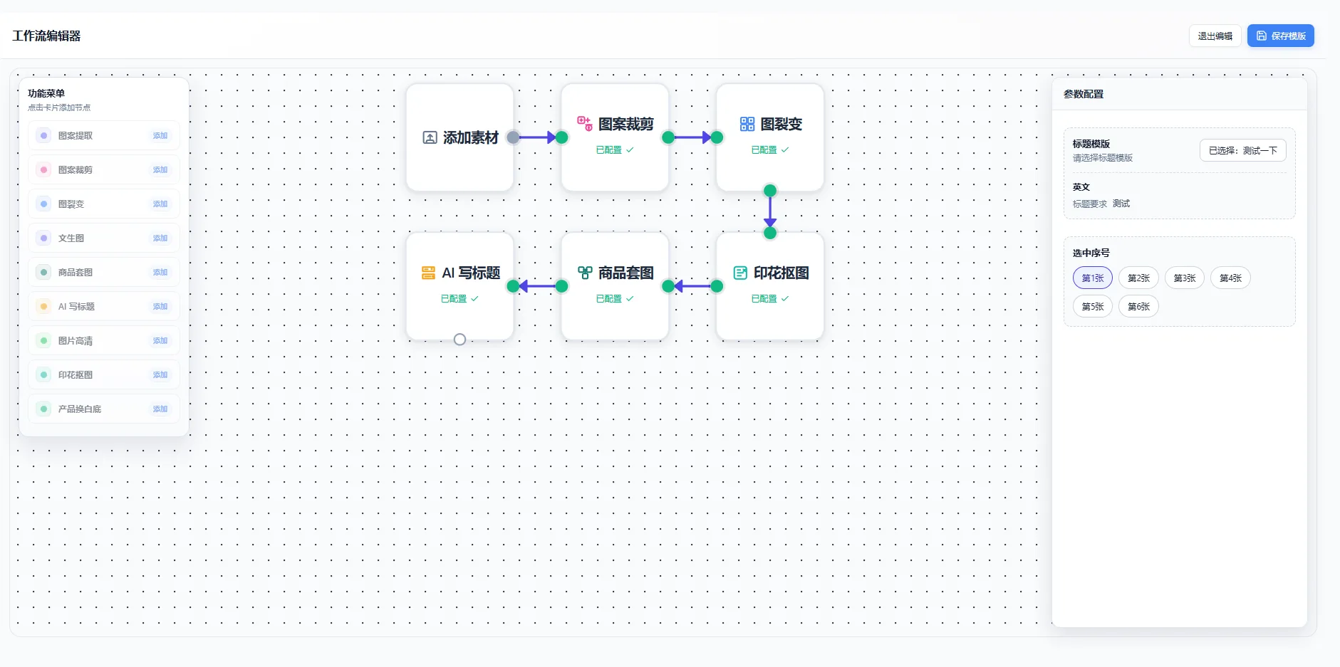 超然POD的工作流系统不要求用户有专业知识,即使行业小白、新手卖家进来,也只需要点点点即可完成复杂工作流编排,大大提高生产效率