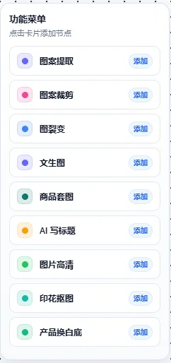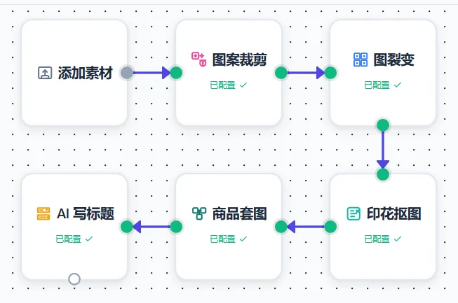 通过点击功能菜单添加的功能节点,会按照顺序自动排列在主画布区域,整体流程清晰可见
