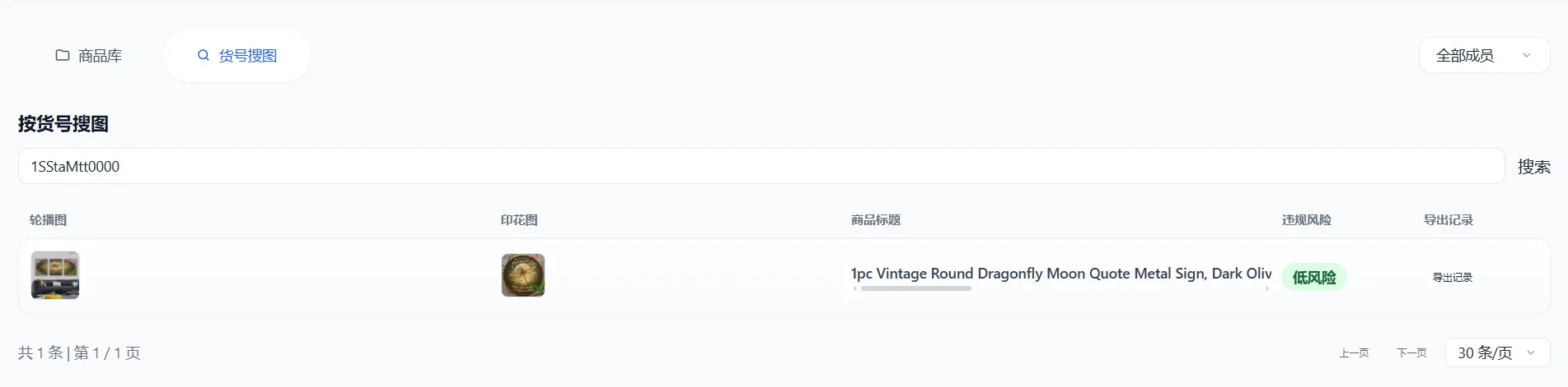 店铺出单后,可以根据商品的货号到搜图功能里进行搜索,即可查看相关商品数据