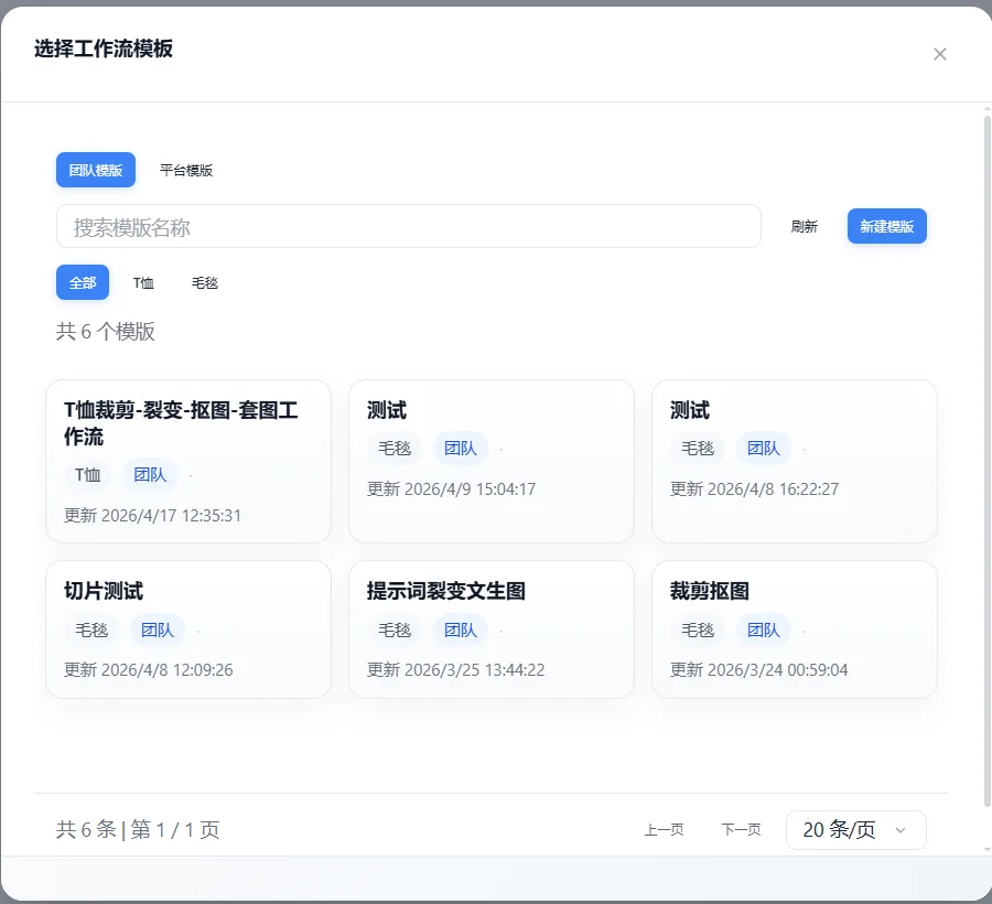 点击选择工作流模版,打开弹窗