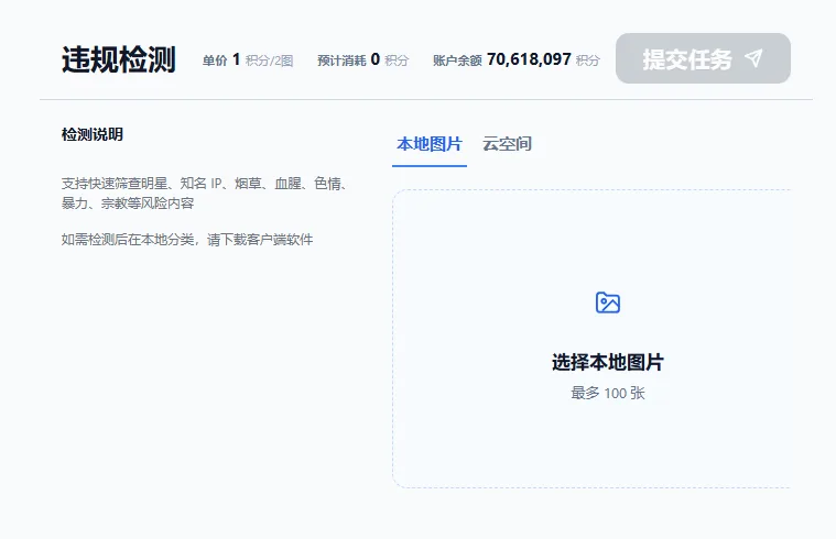 上传图片,提交任务即可完成任务创建
