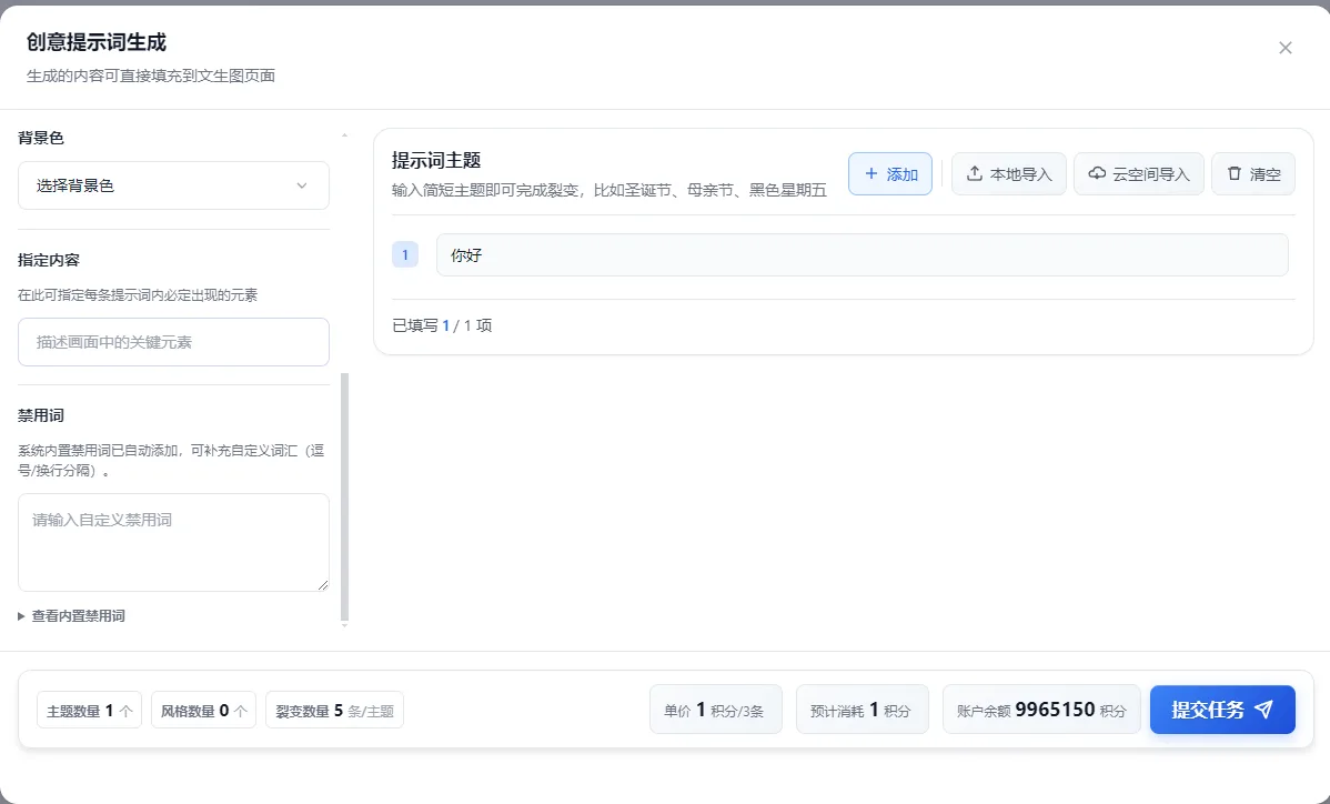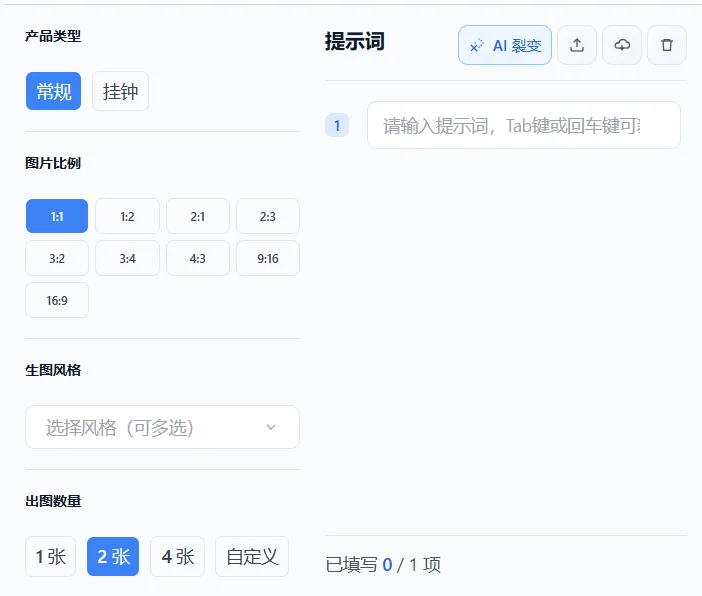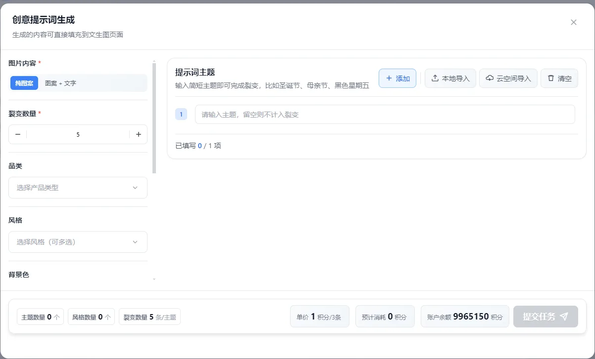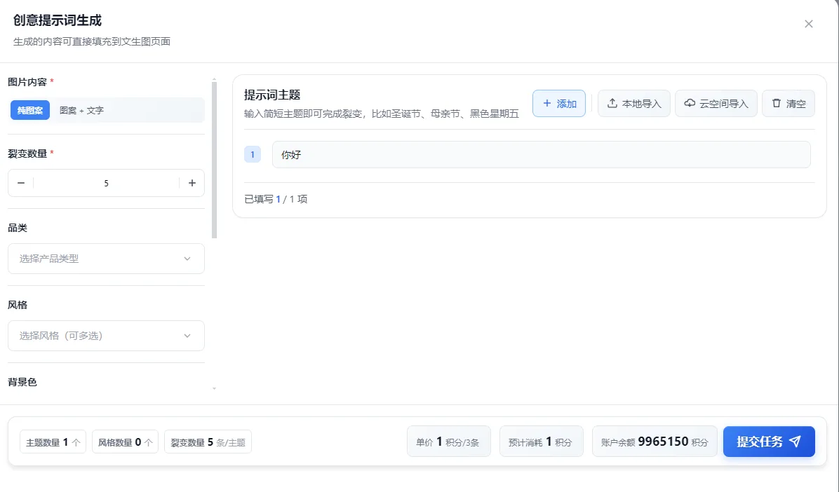 可以选择一条主题裂变出多少条提示词,范围1-50